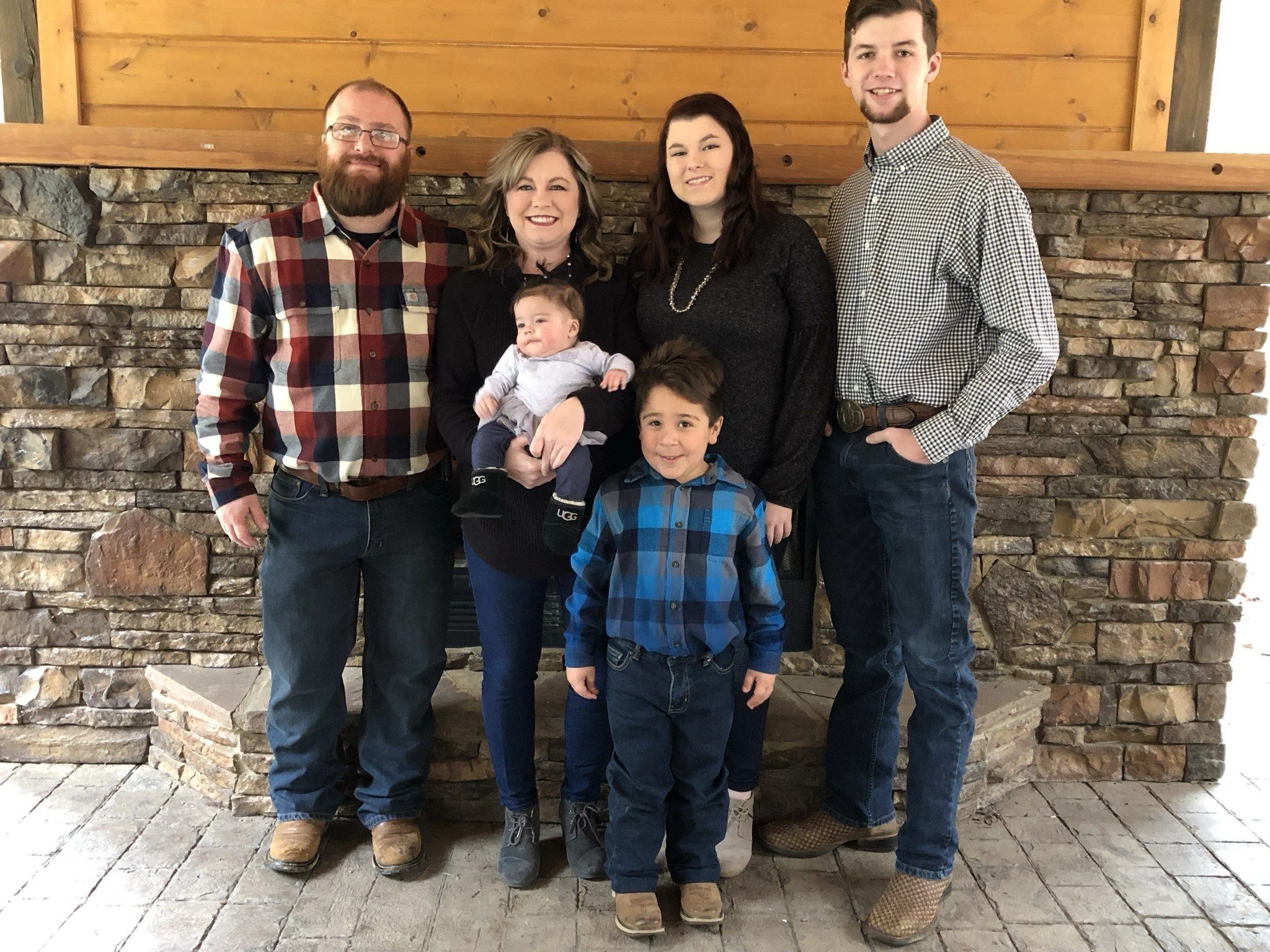 “Our first family picture with Andi and Christian included: Michelle Hardy (Mom), Christian Hardy (Son), Tara Dyer (Daughter-in-law), Thomas Dyer (Son), Kelly Hardy (Dad) holding Andi Hardy (Daughter), Tori Dyer (Daughter)".”
