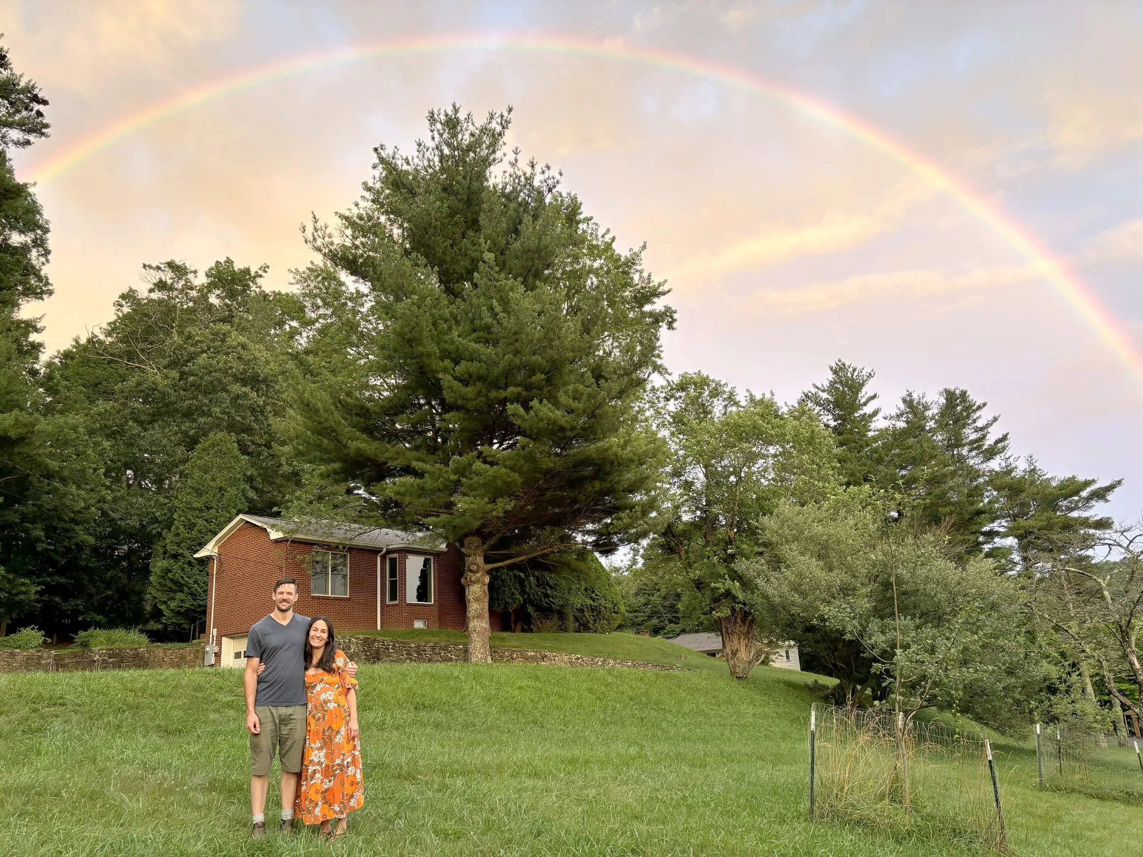 Eric and Sam in front of their house in Boone, NC. Rainbow is Extra!
